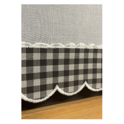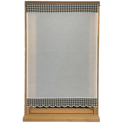 Réalisé sur une étamine blanche et joliment agrémenté d'un galon et d'une coulisse en carreau vichy gris.